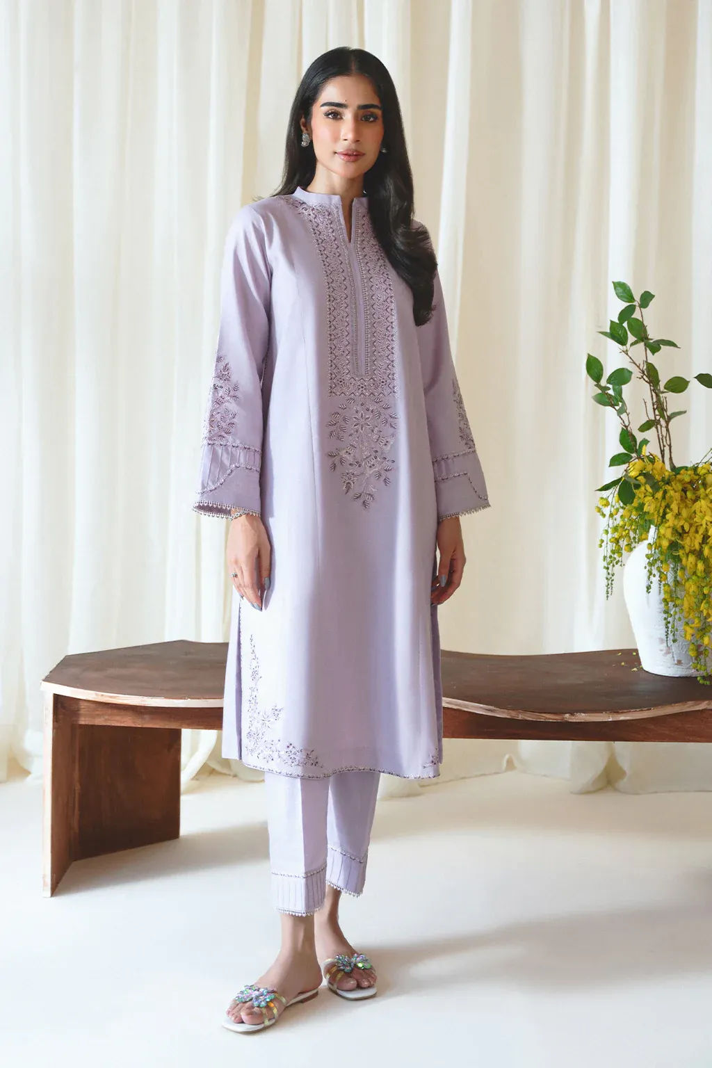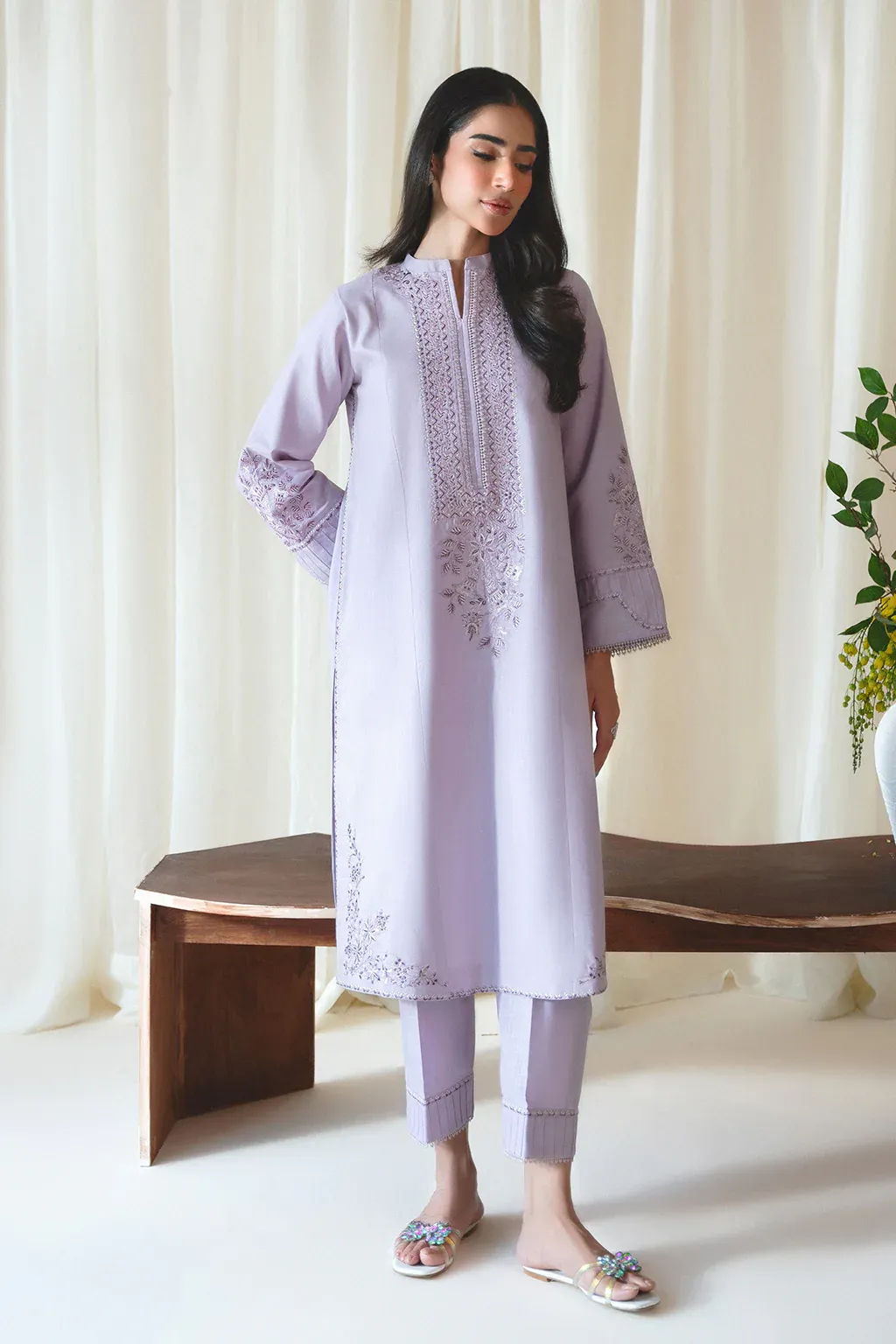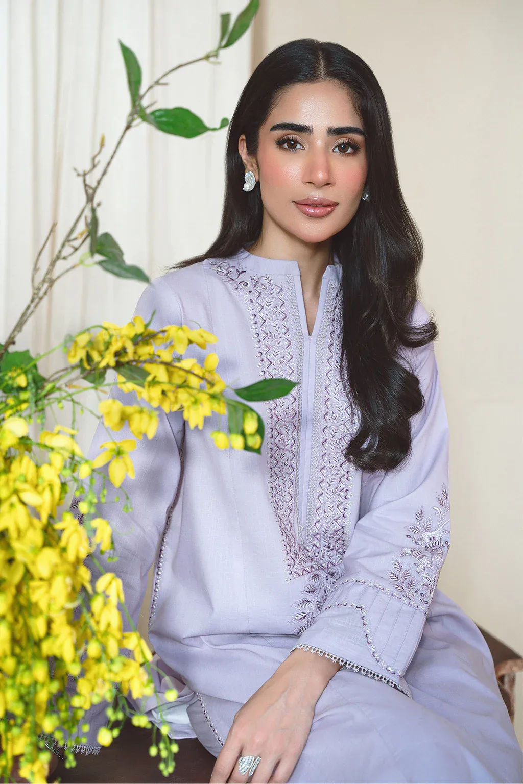 The Aylin 2-piece stitched dress by Kyraa is a vision of elegance in a soft lavender lilac shade. Designed for comfort and style, this stitched 2-piece lawn suit features delicate mauve and heather embroidery, adding a graceful touch. The stitched trouser detailing enhances the refined look, making it perfect for casual outings and semi-formal events. Lightweight and breathable, Aylin is an effortless blend of charm and sophistication.