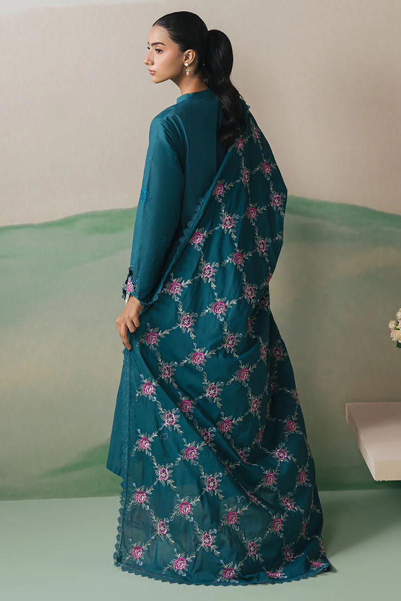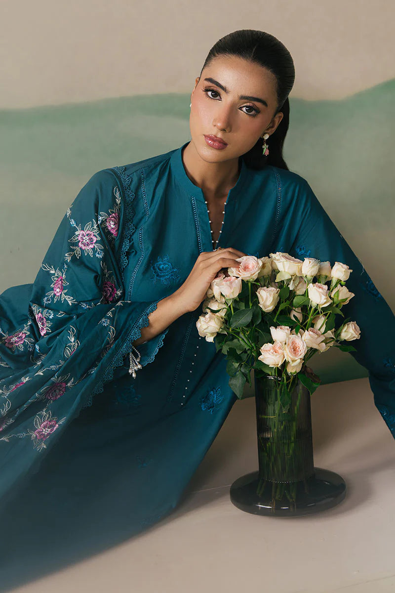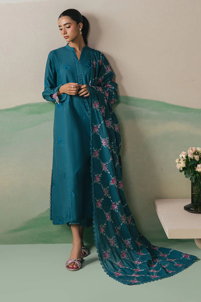 Experience refined elegance with the Ocean Depths 3PC Lawn Embroidered Suit. Featuring a lawn fabric shirt with intricate embroidery on the front and sleeves, complemented by a dyed back for subtle contrast. The cambric dyed trouser offers a comfortable and breathable fit, while the lawn embroidered dupatta completes the ensemble with delicate craftsmanship. Perfect for those seeking a sophisticated and breathable outfit for warm weather occasions.