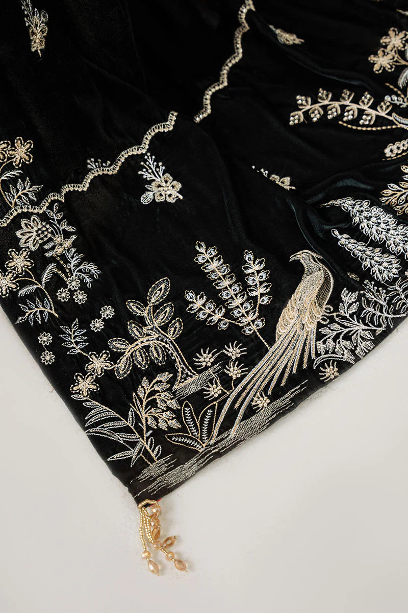 This Forest Serenity 3PC Lawn Embroidered Suit features a finely embroidered lawn fabric on the front and sleeves, paired with a dyed back for a balanced look. The cambric dyed trouser offers comfort and durability, while the chiffon dupatta is delicately embroidered to complement the ensemble. Ideal for those seeking a refined and elegant outfit with expert craftsmanship.